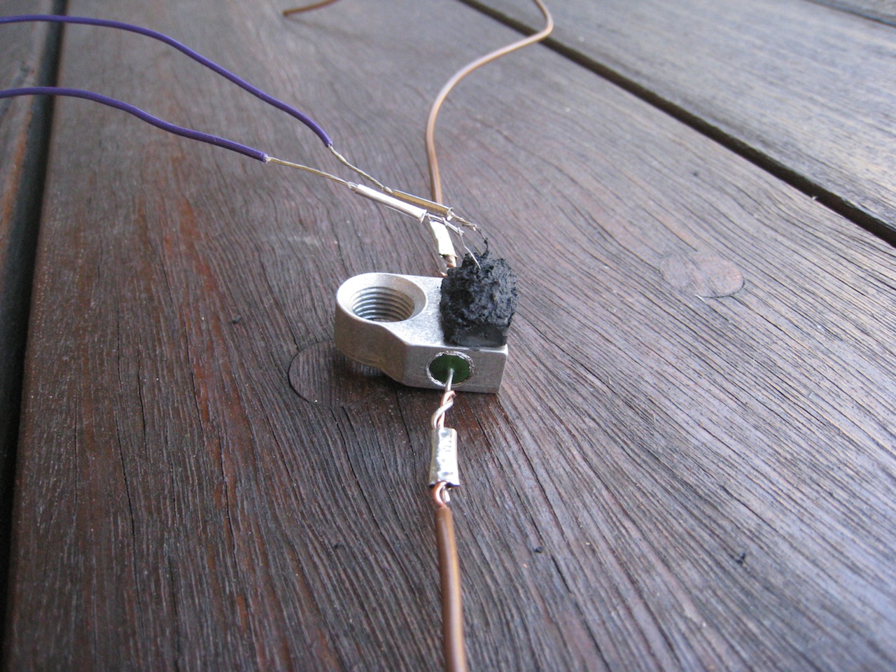 This also makes it easy to fit the power resistor, as you can then safely use aluminium foil as a wrap around the power resistor to ensure a tight fit.