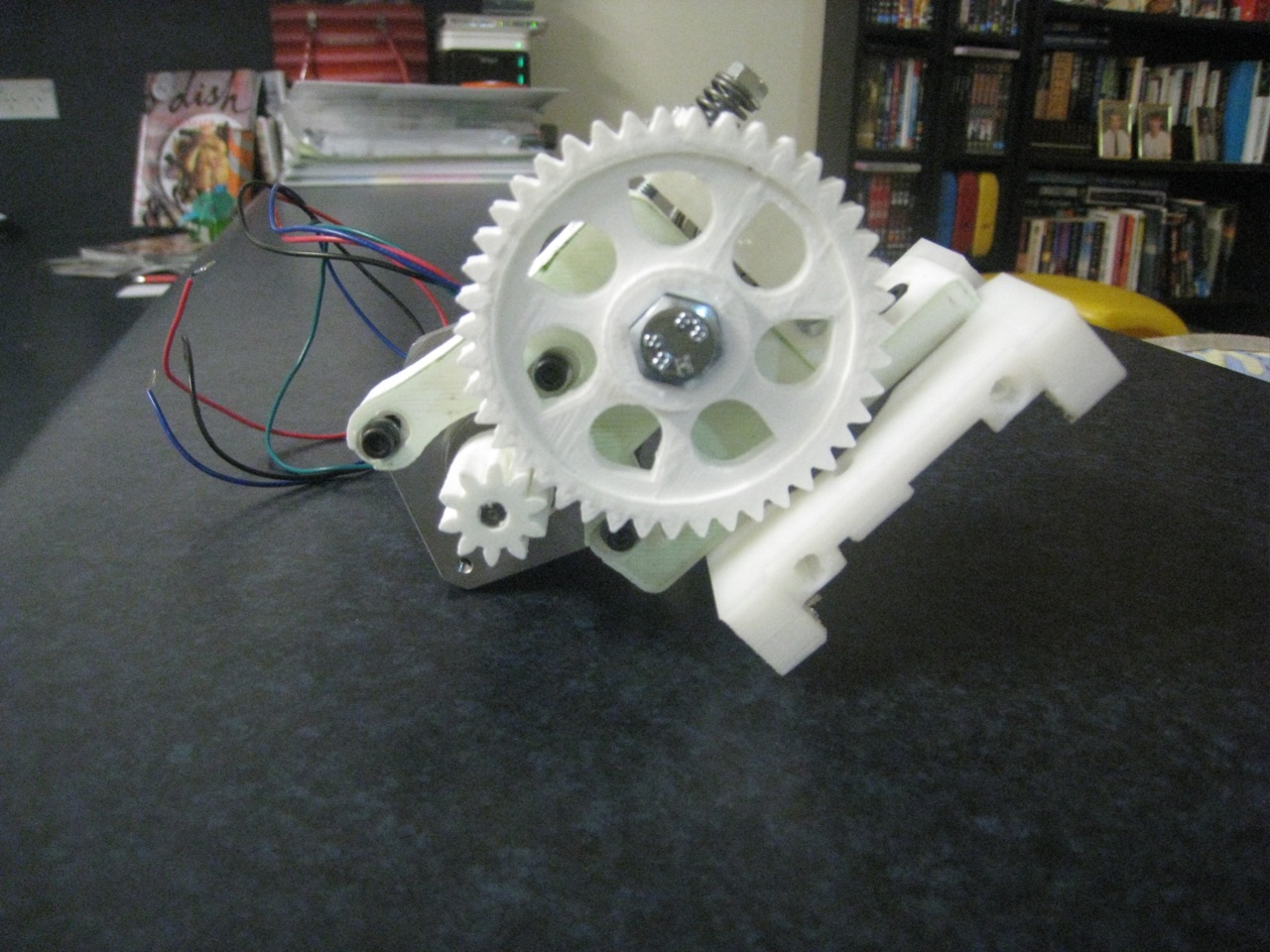 With Wade’s design, there’s a lot of bolts which are underneath other bolts, which basically means that you have to disassemble large amounts of the extruder to work on other parts. This is noticable with the X-carriage mount. To get to it, you have to remove the motor. To remove the motor, you have to remove the hobbed bolt and large gear. And that’s the first mount. Greg’s design fixes nearly all of these problems, particularly with the innovation of the angled motor mount.