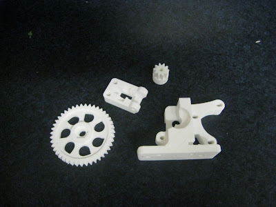 Unlike Nophead’s parts, Greg’s parts came ‘raw’, so they needed a bit of work with a knife and drill to tidy up before the build. This gave me a good chance to have a look over the parts and the design. Greg’s design is very interesting, with some definite improvements over Wade’s. As seen by the name, the improvements are aimed towards accesibility. This is very noticeable with regards to the filament access, but it extends to all other aspects of the design.